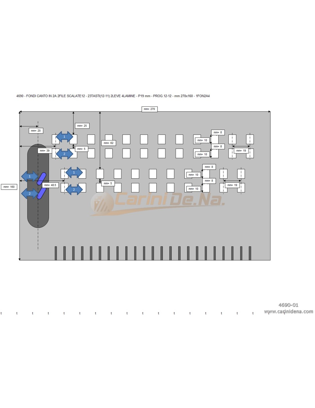 FONDI CANTO IN 3A 2FILE SCALATE12 - 21TASTI(11-10) 3LEVE 6LAMINE - P19 mm - PROG.123-312 - mm 260x160 - 1FON3A6_23-28